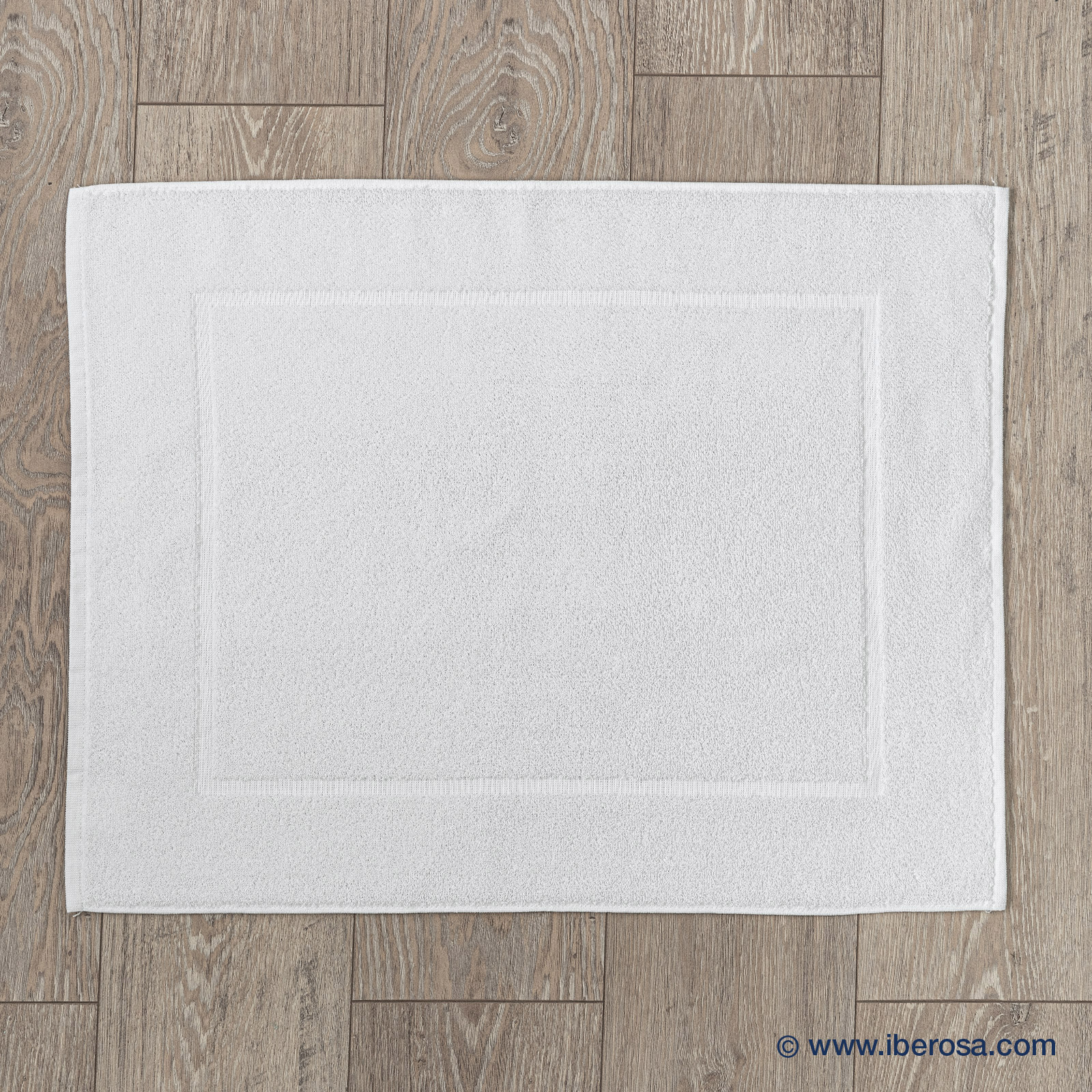 Tapis de bain blanc en éponge 2 plis 100% coton, très absorbant, large résistance et confortable.